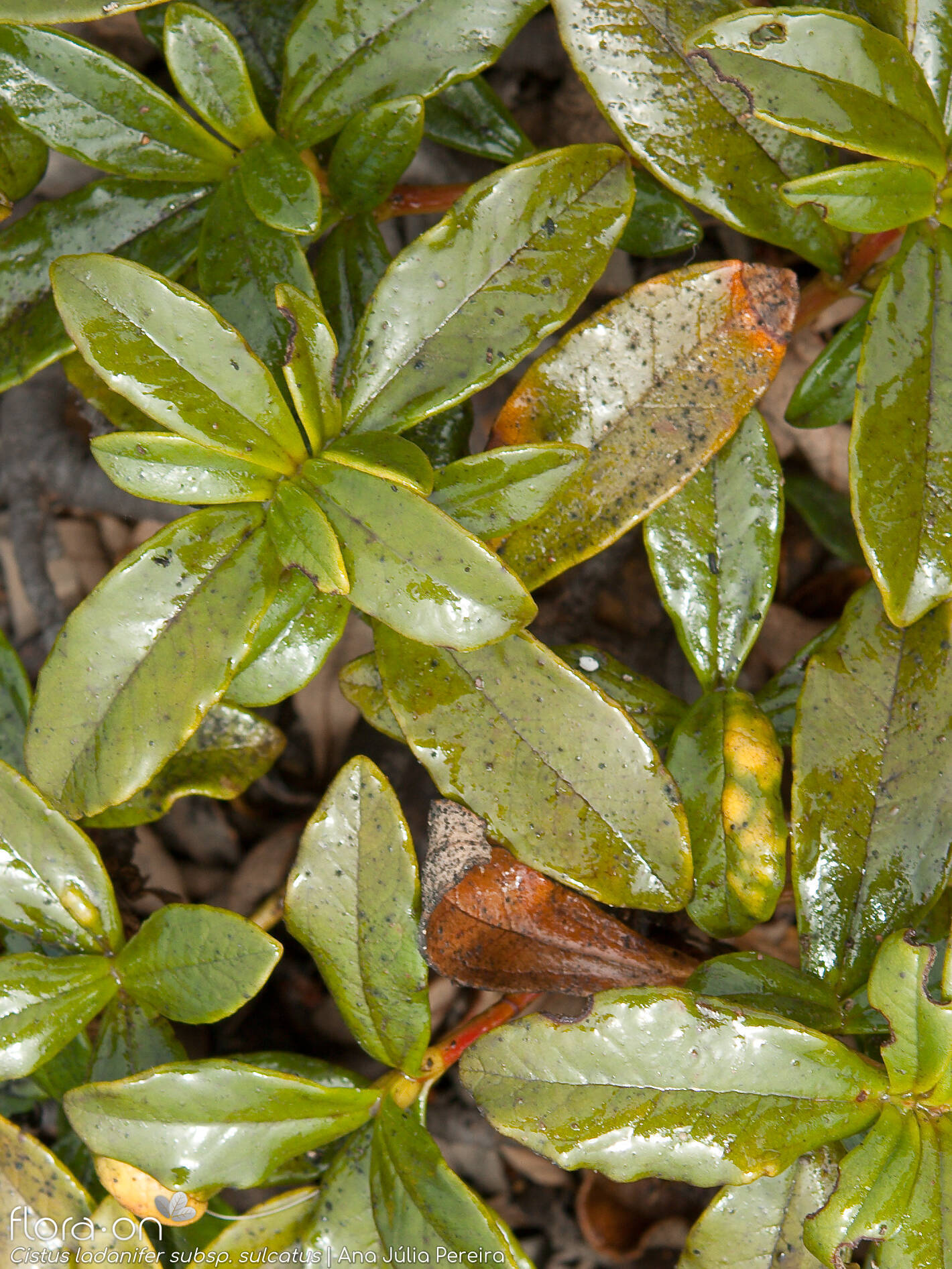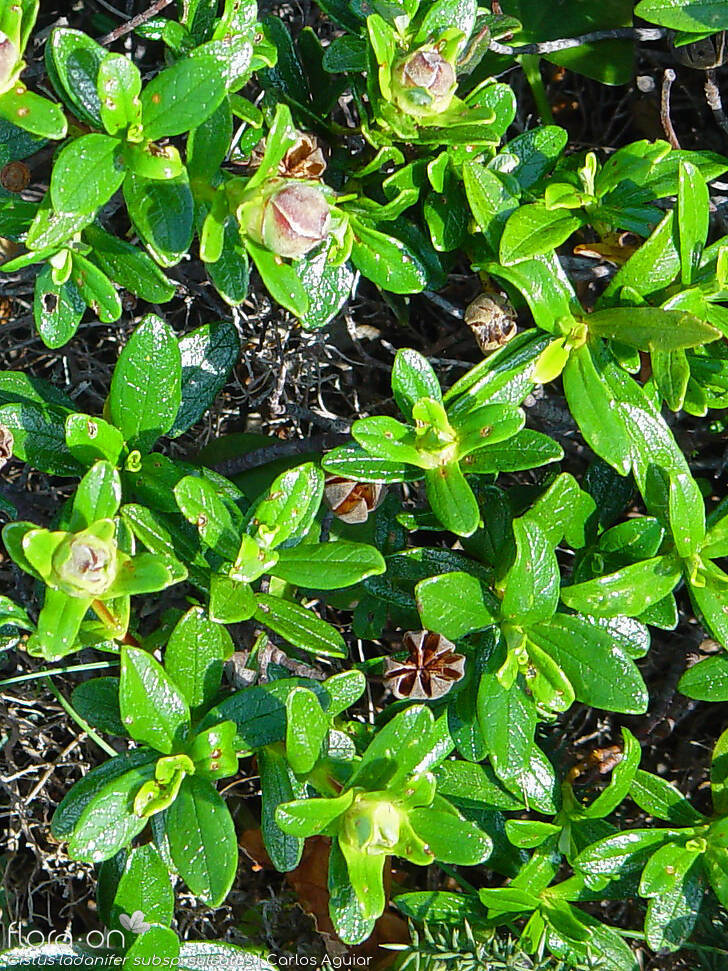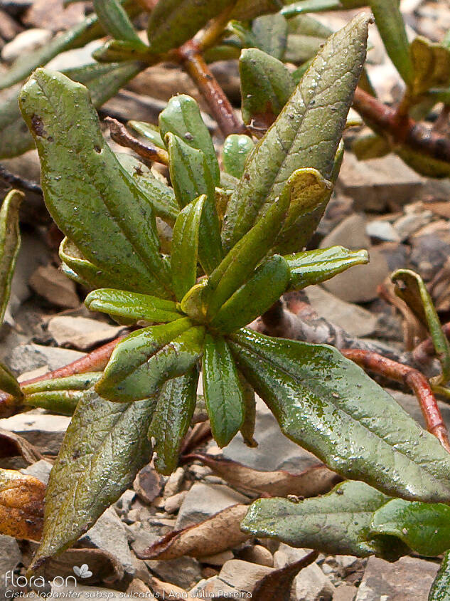 subsp. ladanifer: Matos e matagais xerofílicos e também sob coberto de sobreirais, azinhais ou pinhais, sobre solos pobres e ácidos, com origem em xistos, granitos, arenitos e menos frequentemente, calcários descarbonatados. Pode formar populações muito densas, denominadas estevais, que colonizam zonas ardidas ou perturbadas com alguma frequência. Em regiões de clima seco e quente.